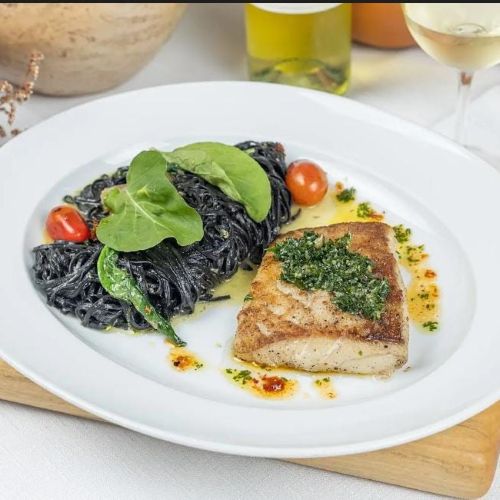 Combinado de panqueca, jiló recheado, almondêga e moelinha, servidos com maionese verde