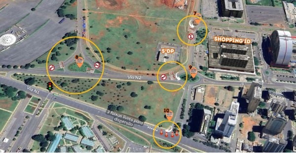 Na via N1, na altura do Planetário, e na via de contorno do Estádio Nacional de Brasília (ENB), o Detran-DF implantará sinalização viária para travessia de pedestres e para coibir o estacionamento irregular.